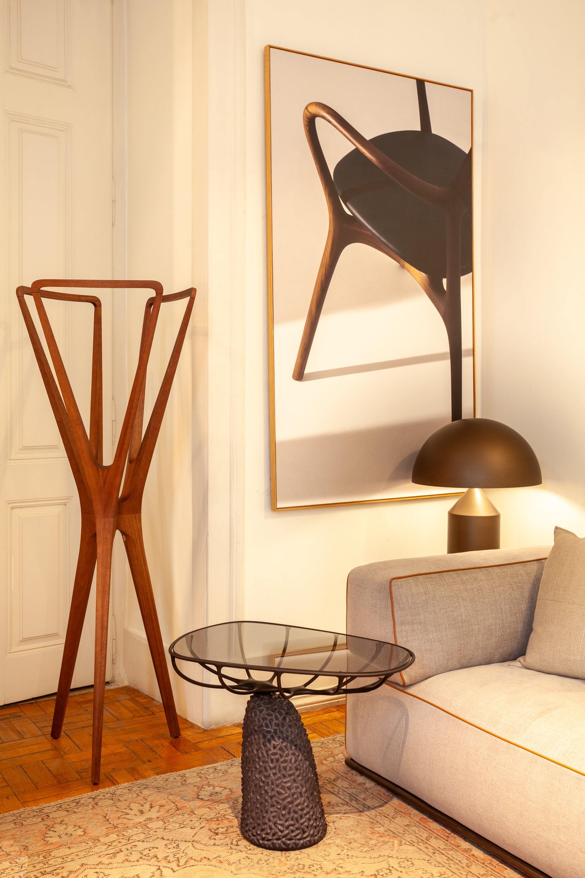 Natural do estado de Santa Catarina, JADER ALMEIDA partilha frequentemente histórias de clientes que se apaixonaram pela peça e optaram por “deixá-la respirar” como escultura, abdicando da sua função original de cabide ou cabideiro.
