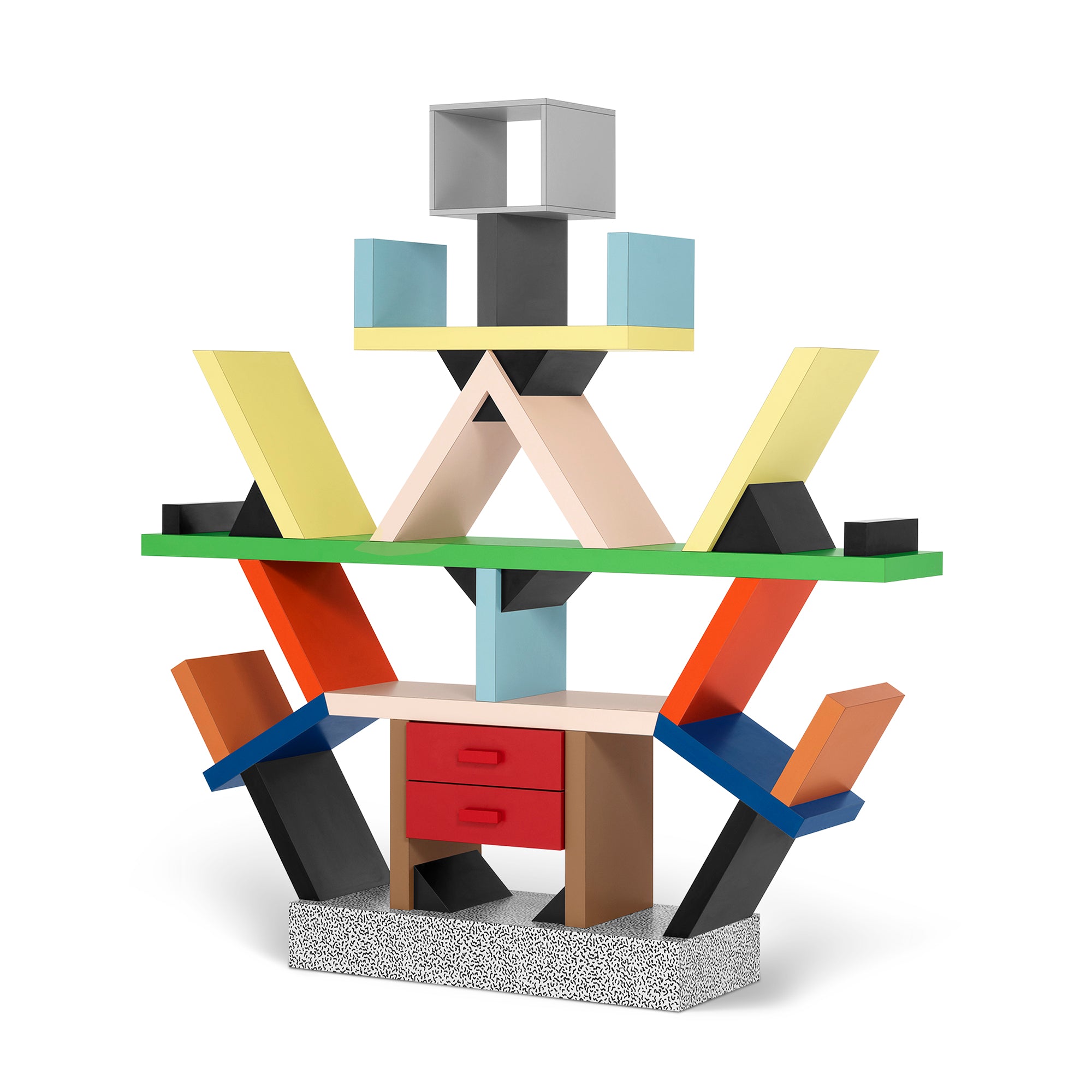 Fundada por Ettore Sottsass em 1980, a marca italiana desafiou o status quo do design, rompendo com o minimalismo e a rigidez do modernismo para criar algo absolutamente vibrante, inesperado e provocador.