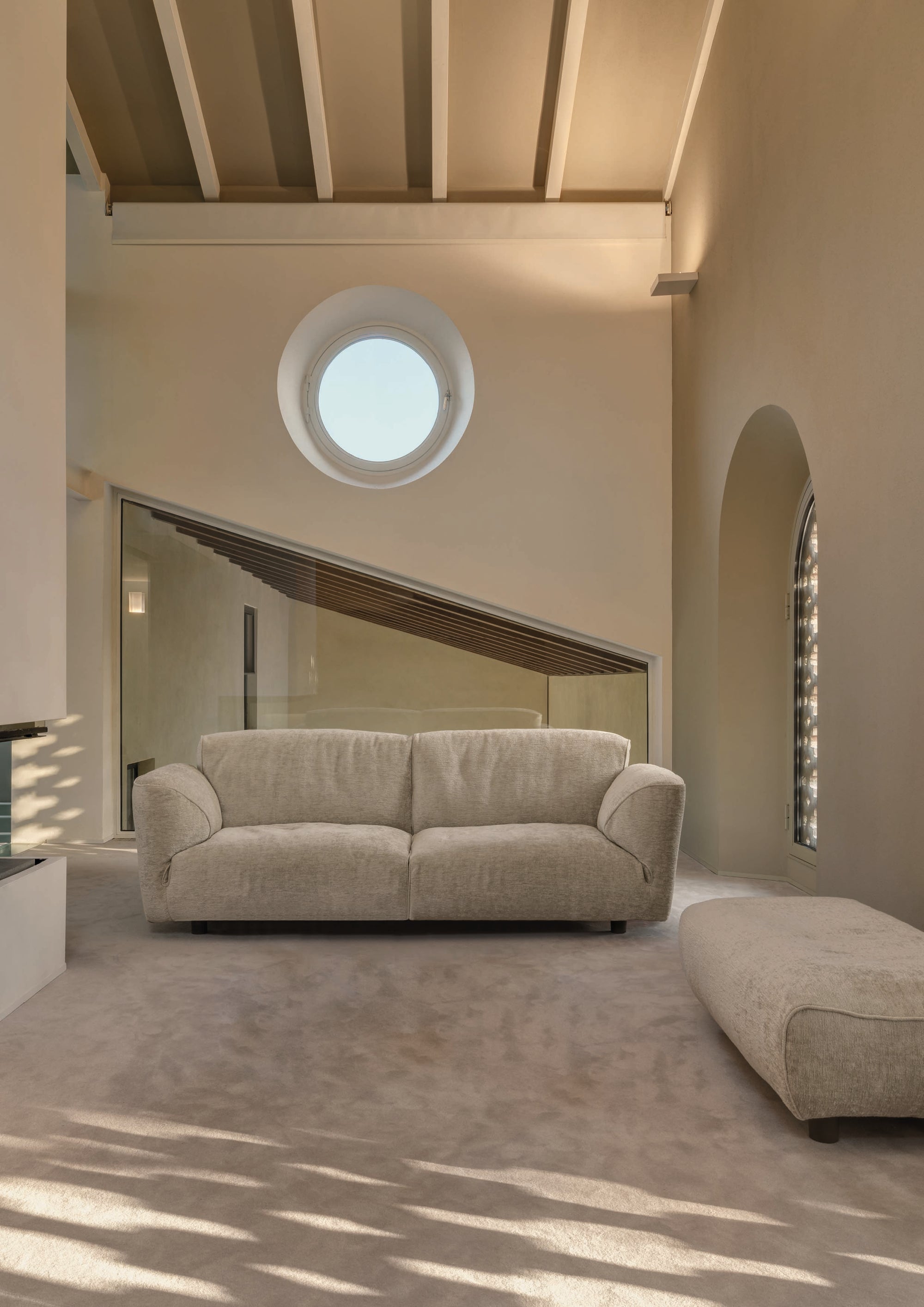 O destaque do Grande Soffice está nos seus generosos enchimentos, compostos por uma combinação de espuma de última geração e materiais de preenchimento macios. Estes materiais, escolhidos pela sua durabilidade e capacidade de oferecer uma suavidade envolvente, criam uma sensação de acolhimento e leveza que proporciona um conforto profundo.